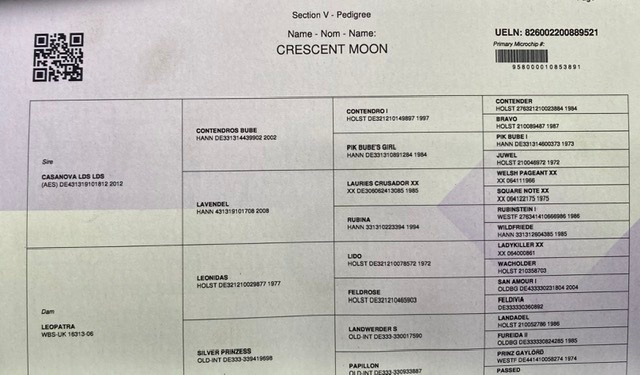 Both mares were graded by Dr Christian Schact from Germany -Veterinarian and Sport Horse Conformation author/expert, who awarded his Dam Leopatra high scoring foal award and Main Mare book in Oldenburg North America before we moved back to the U.K. Leopatra was also a bold jumper too with a good work ethic.